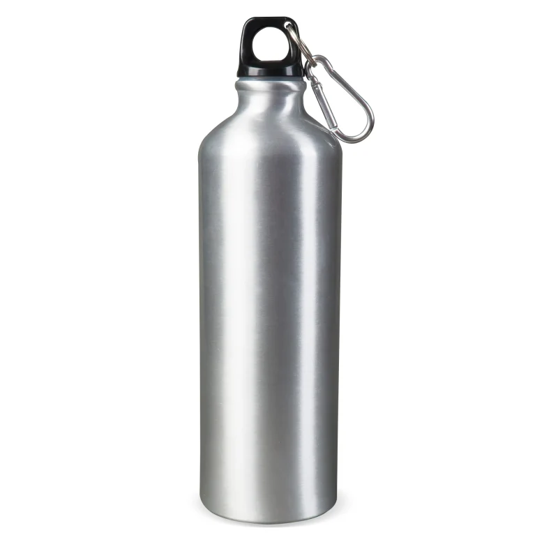 Termosflaska med dubbelvägg och rep för att enkelt bära flaskan med sig. Utsidan har en robust designEnväggig aluminiumflaska med karbinhake. Bär flaskan i en påse med den medföjande karbinhaken. Flaskan är tillverkad i lätt aluminium och rymmer 750 ml. Lämplig för kalla kolsyrade drycker.. Storlek: 72x230mm.
