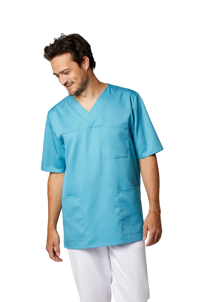 Bussarong 25448, Unisex är en v-ringad bussarong i klassiskt snitt. Tre fickor framtill samt en bröstficka. Invändig separat ficka inuti höftfickan för mobiltelefon.