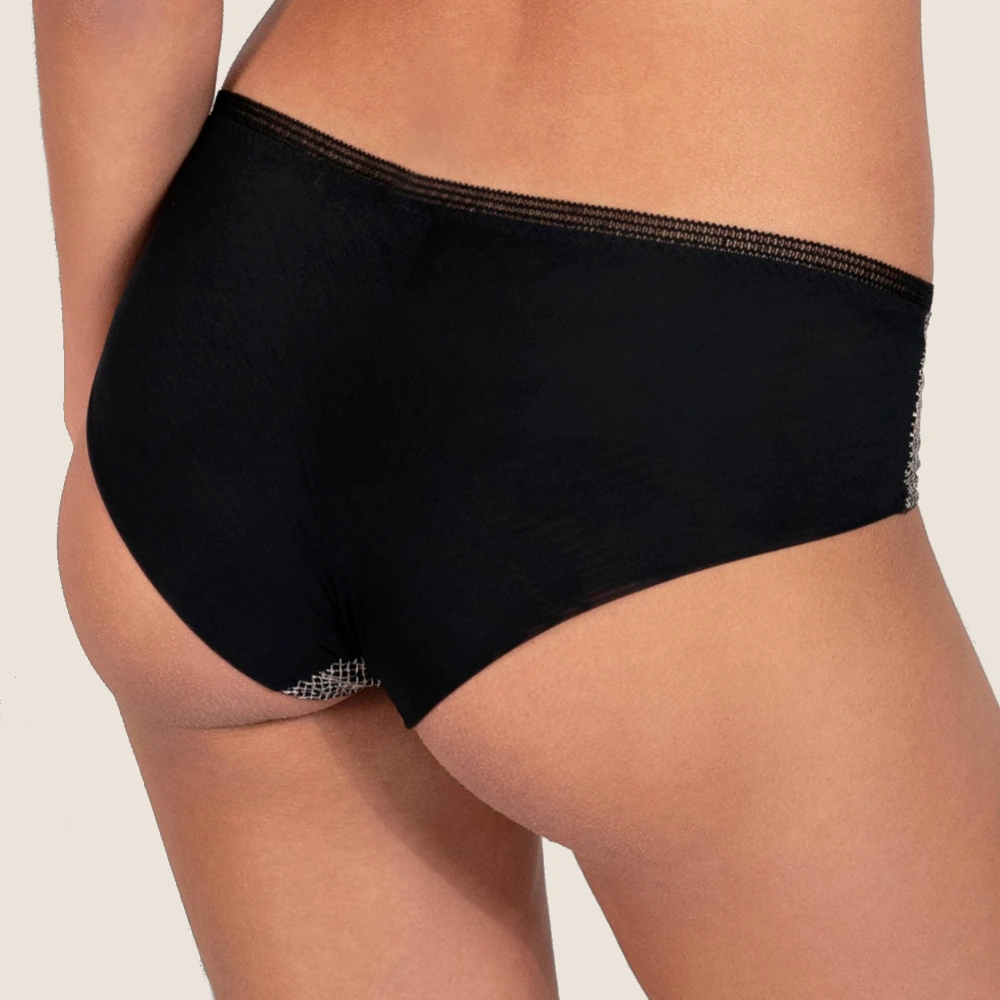 Vi är stolta över att presentera Empreintes Hipster Trosa, en exklusiv och läcker produkt som du hittar hos på AVIANI. Empreintes Hipster Trosa är en lätt fransk hipster trosa från det exklusiva Ella-kollektionen som är osynlig under kläder. Dess eleganta design inkluderar en broderad framsida och fina detaljer av nätmaterial kring midjan. Den svarta färgen skapar en subtil kontrast mellan mörka och ljusa nyanser, vilket framhäver de fantastiska spets- och broderidesignerna i kollektionen.