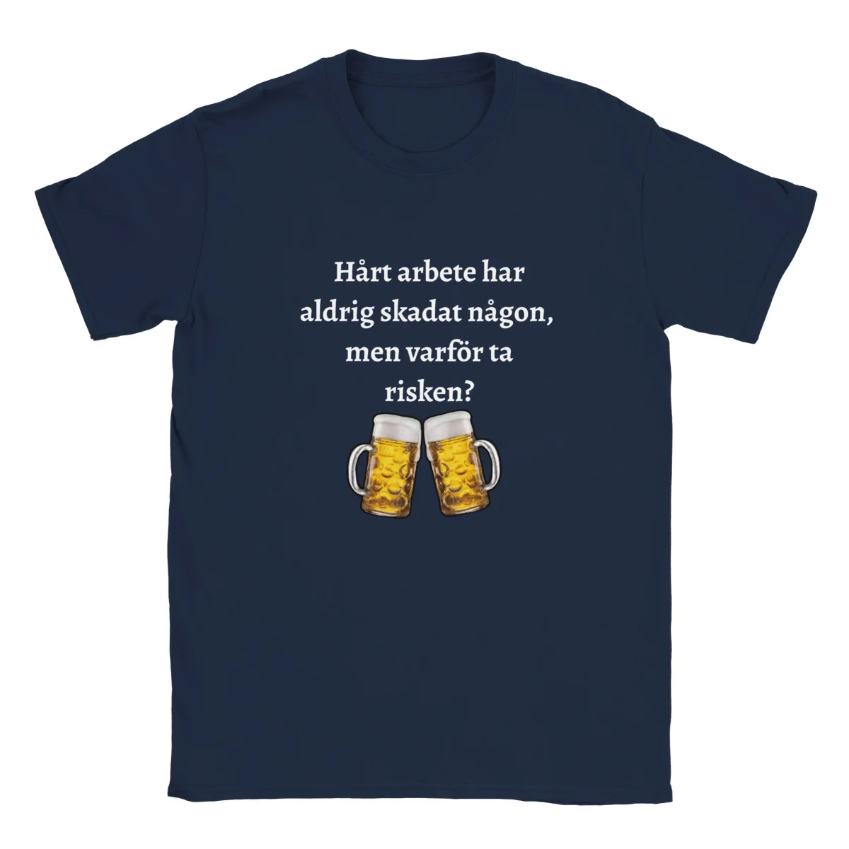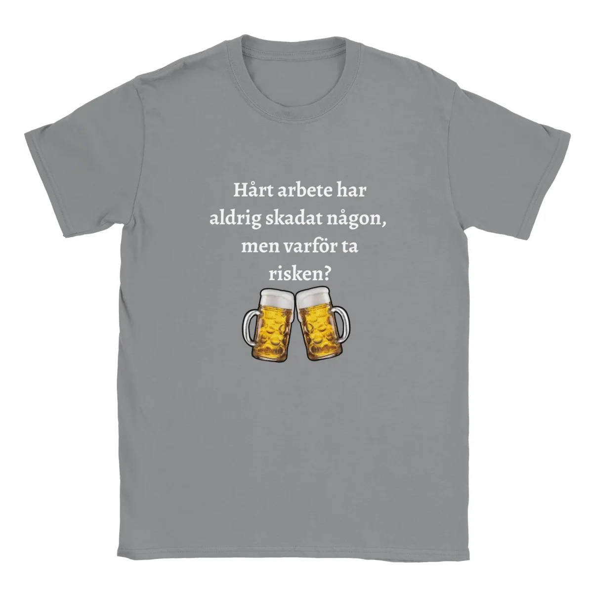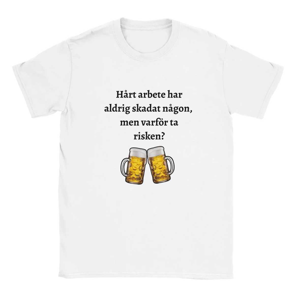 ”Hårt arbete har aldrig skadat någon, men varför ta risken” – T-shirt för dig som hellre tar det lugnt