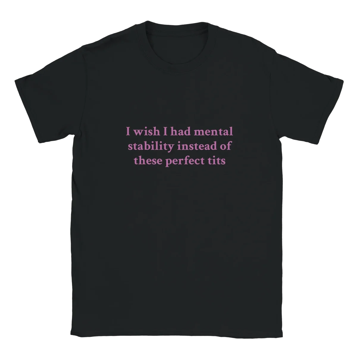 ”I wish I had mental stability instead of these perfect tits” – T-shirt med ärlig självironi och självkänsla