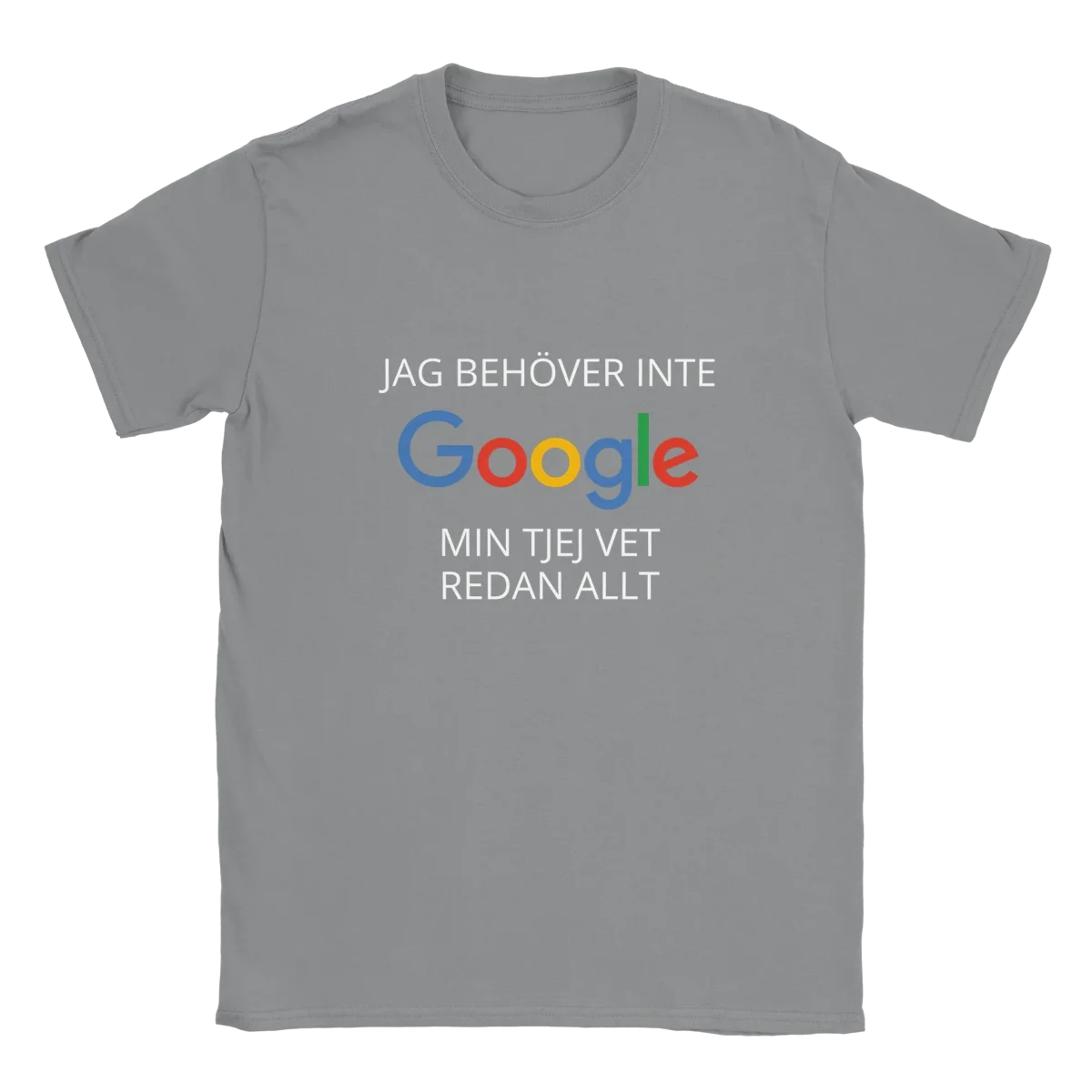 ”Jag behöver inte Google – min tjej vet redan allt” – T-shirt med relationshumor och noll kontroll