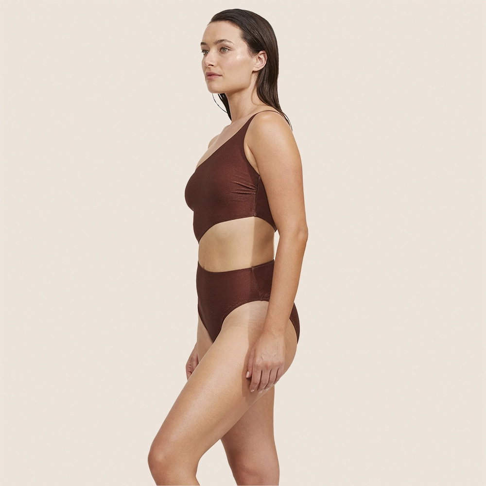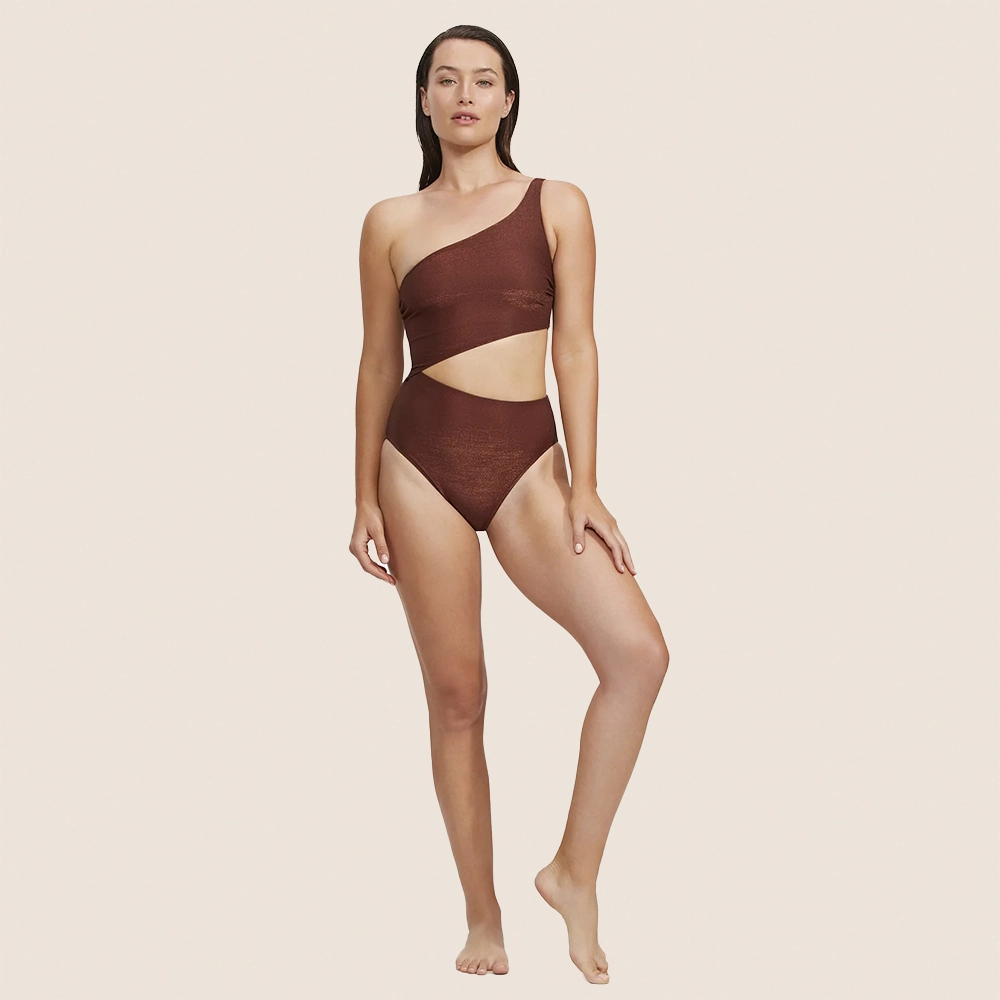 Upptäck Gottex High End One Shoulder Cut Out – en elegant baddräkt med en axel och stilrent urklipp vid midjan, designad för att framhäva figuren på ett sofistikerat sätt. Den bronsfärgade ytan skimrar vackert i solen och ger ett lyxigt intryck både på stranden och vid poolen.