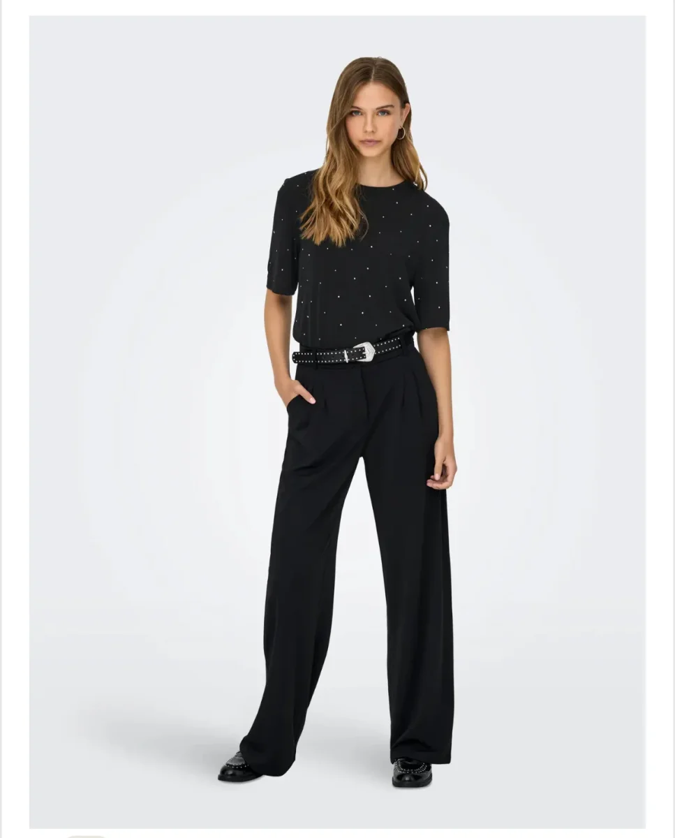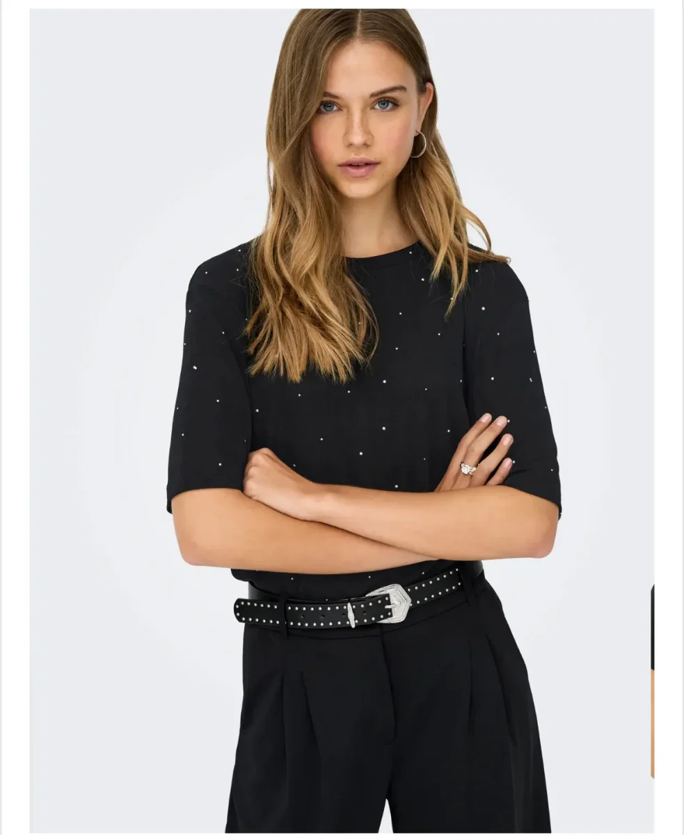 De små glittrande detaljerna ger ett lyxigt intryck utan att ta över, vilket gör den idealisk både till vardagsjeans och festliga kjolar.