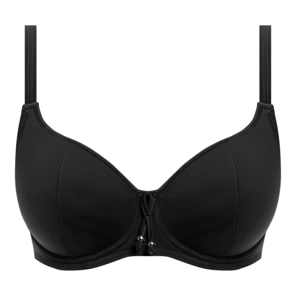En svart bikinitopp med hjärtformade kupor. Bikinitopp med bygel för att ge ett bra stöd även för tyngre bröst. Reglerbara axelband som går att ändra efter storlek.